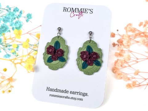 Cercei vintage cu trandafiri, handmade din lut polimeric