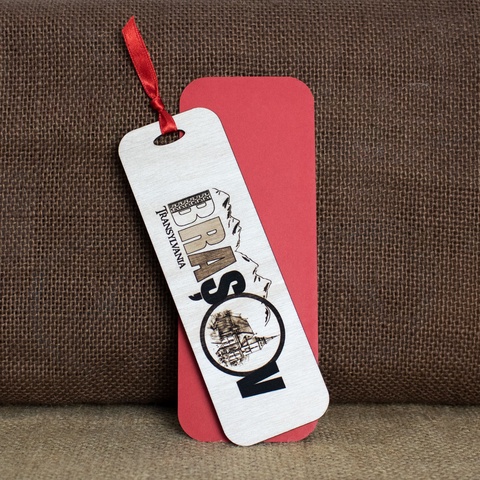 Semn de carte suvenir, din lemn, gravat, Brasov, Transylvania