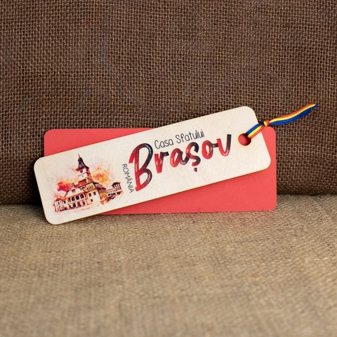 Semn de carte suvenir, din lemn, color, vintage, Casa Sfatului Brasov