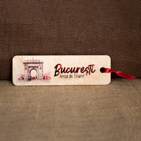 Semn De Carte suvenir din lemn, acuarela vintage, Arcul de Triumf Bucuresti