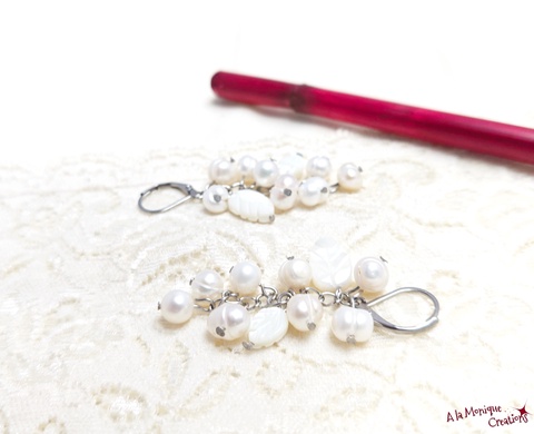Cercei cu perle si frunze de sidef