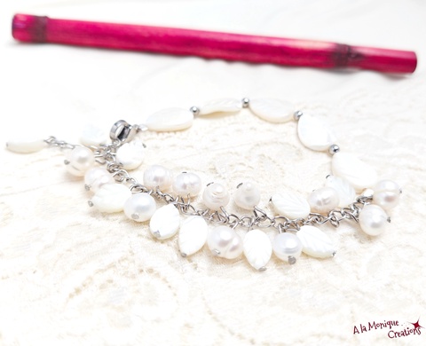 Bratara cu perle si frunze de sidef