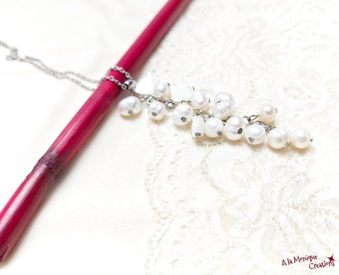Colier cu perle si frunze de sidef