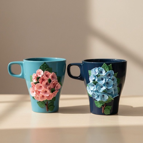 Cana ceramica cu hortensii (set de 2 cani)