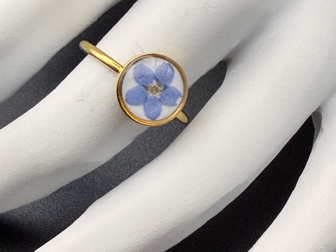 Inel cu nu-mă-uita albastra naturală în rășină – bijuterie florală delicată