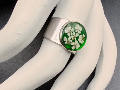 - Material/Conținut rasina uv, floare naturala, baza inel otel inoxidabil reglabil
