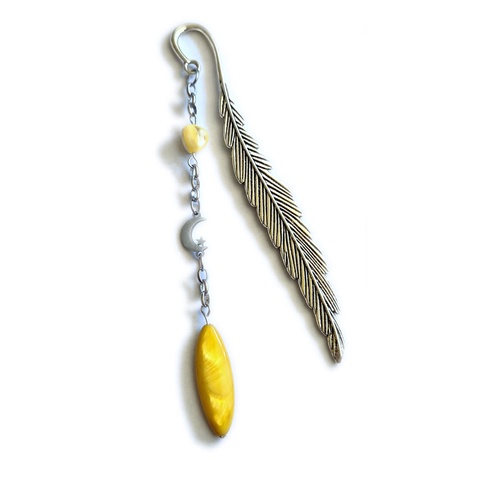 Semn de carte metalic cu inox si sidef - luna - 084544