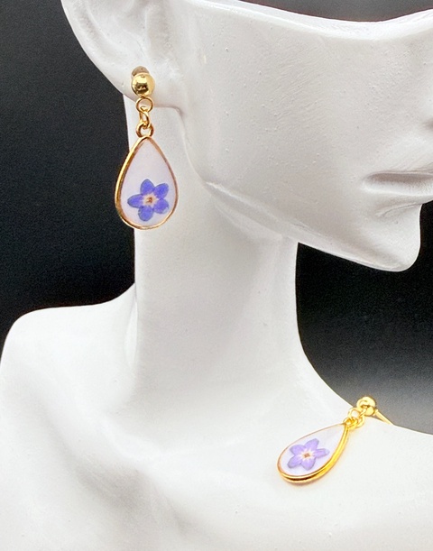 Cercei cu floare de nu-mă-uita naturală în rășină – cercei handmade delicati