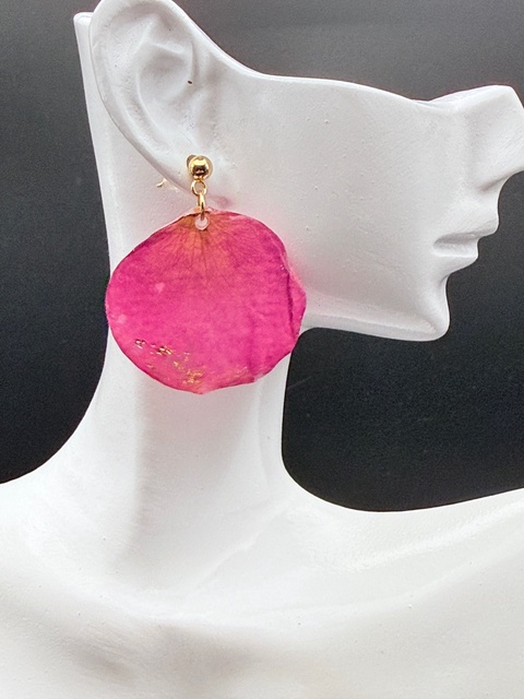 Cercei cu petale naturale de trandafir roz si foita de aur – bijuterii din flori presate