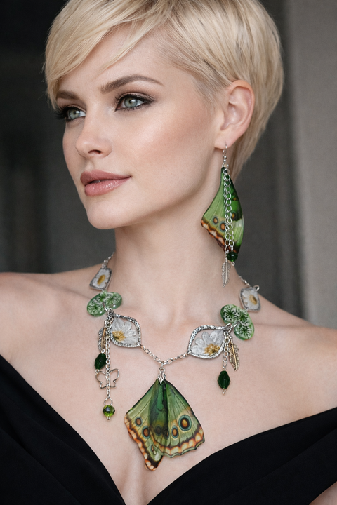 Set bijuterii „Aripi de Smarald” – rășină cu flori naturale din colectia - Aripi fermecate 01902