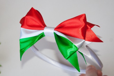 Bandă pentru păr cu panglică în culorile naționale - roșu/alb/verde