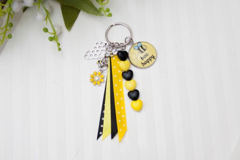 Breloc, accesoriu pentru geantă - Albine negru/galben