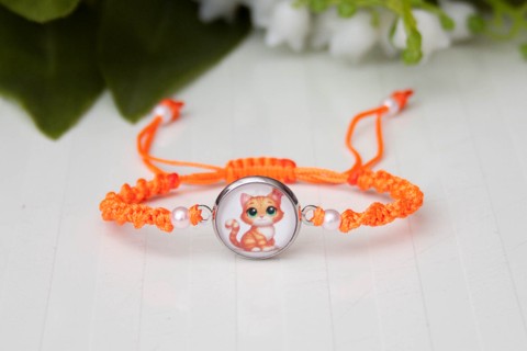 Brățară împletită din macramé pentru copii - Portocaliu cu pisici