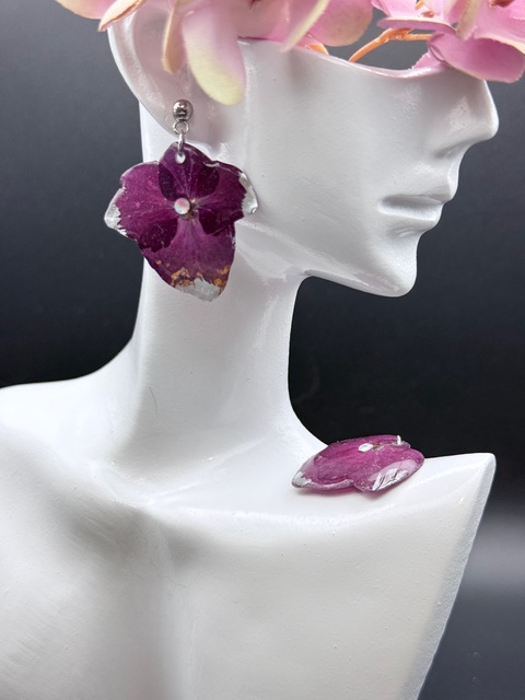 Cercei cu hortensie mov in rasina – bijuterii florale handmade
