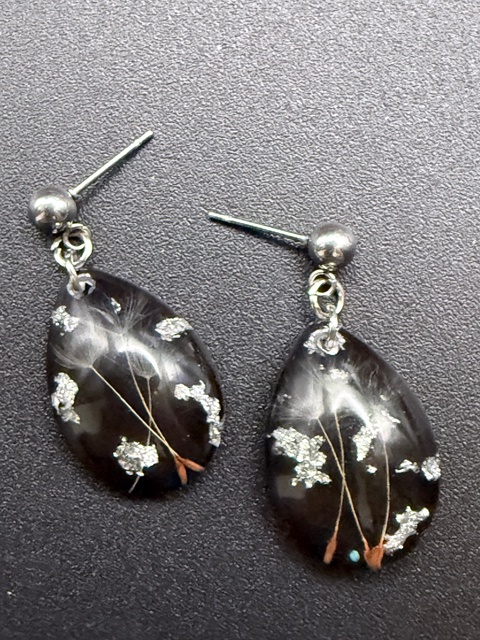 Cercei cu puf de păpădie natural în rășină – bijuterii handmade delicate