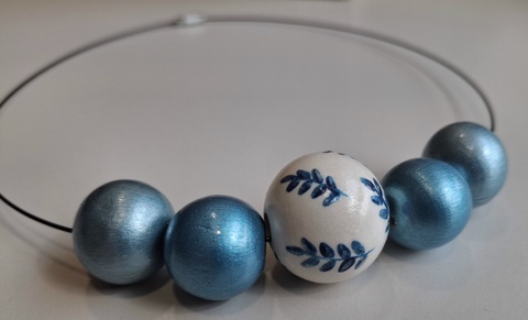 Colier handmade albastru metalizat