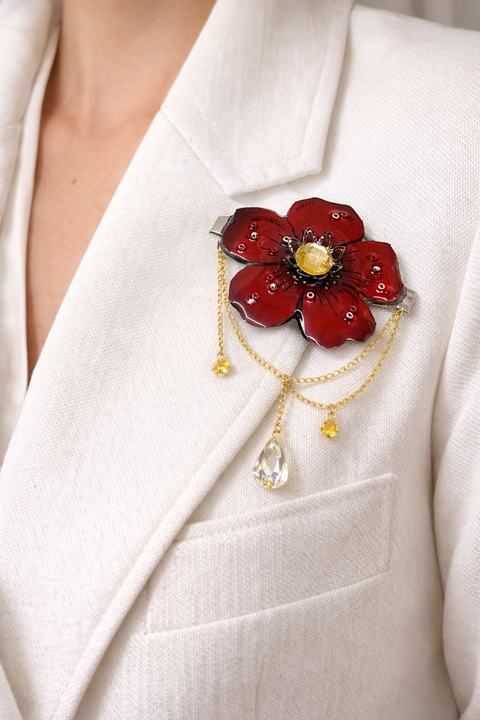 - Material/Conținut cristale, inox, motiv floral maci, rasina