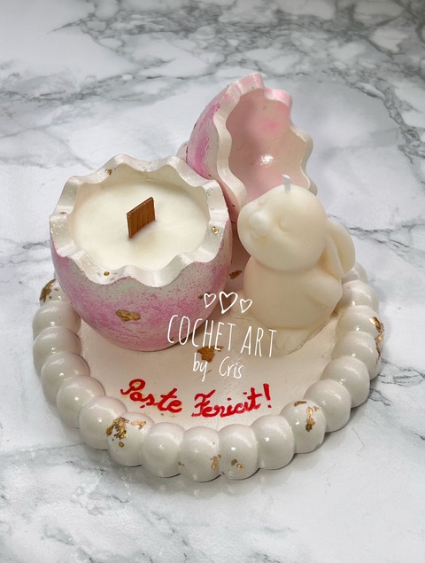Set Paste cu tavita din ceramica, ou cu ceara de soia si iepuras lumanare