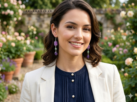 Cercei handmade - ametist fațetat, jad și tortițe din argint 925 (cod1407)