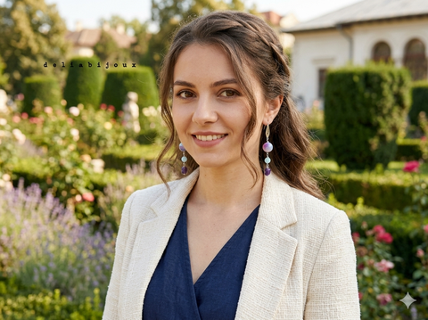 Cercei handmade lungi - Persian jad, angelit și ametist bijuterie cu pietre naturale (cod1408)