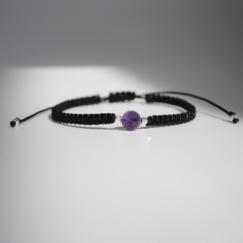Brățară cu Ametist Natural – Zodia Vărsător – Șnur Reglabil si Argint 925 – Gabrieli