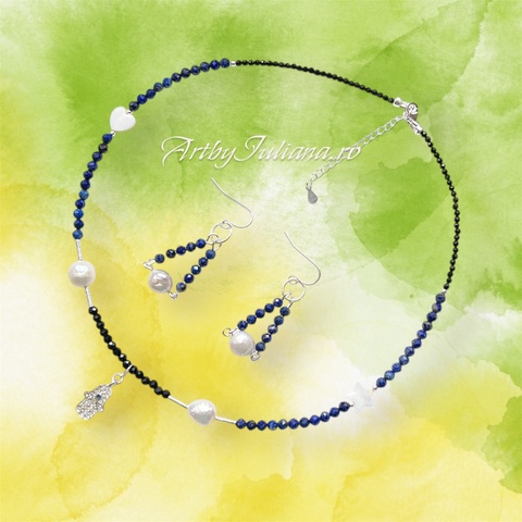 Set (colier, cercei) pietre semiprețioase și argint "Albastru imperial"