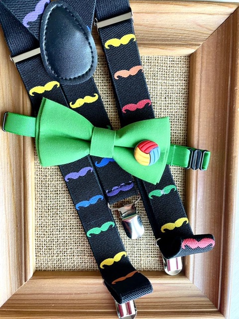 Set pentru copii, papion verde si bretele cu mustati