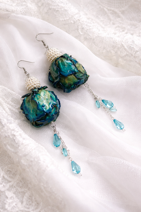 Cercei cu trandafiri reali intregi ,cadou pentru iubita,mama,fiica,logodnica,prietena,educatoare