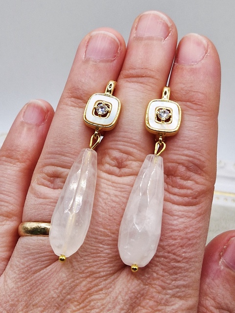 - Material/Conținut cuart roz, placat aur, inox
