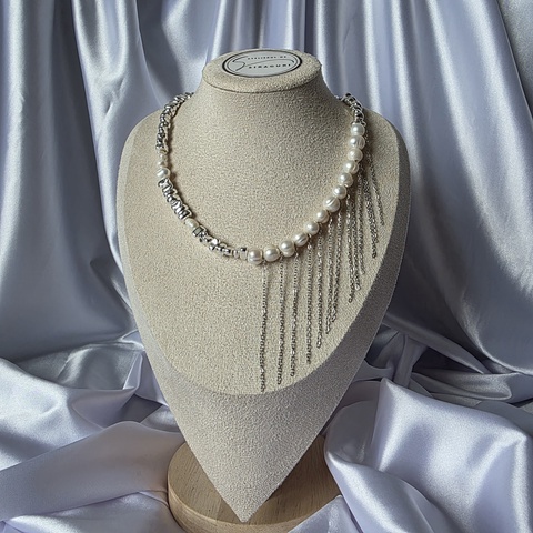 Colier cu lanțuri, perle de cultură și hematit