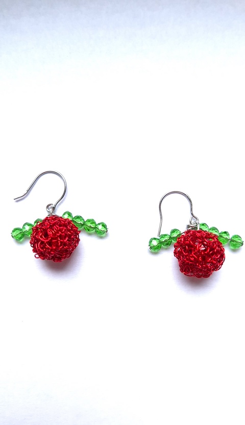 Cercei mici cireșe din sarma emailata si margele de sticla