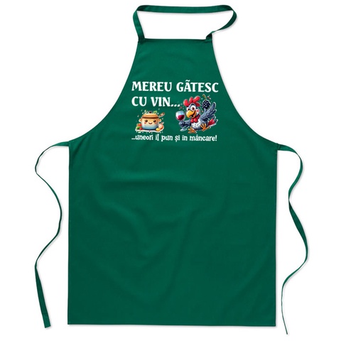 Sort de bucatarie, bumbac, Piksel, Verde, Mereu gatesc cu vin, M3