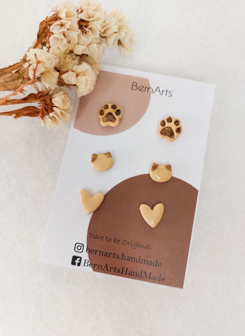 Set de cercei pentru iubitorii de pisici - Cat Lover - Crem/Bej