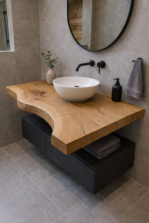Blat din lemn masiv margini naturale – blat pentru baie - 100x60x6 cm