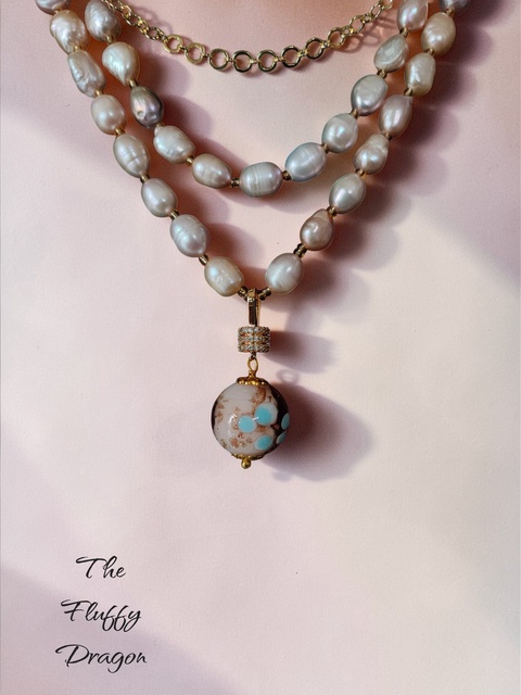 Colier din perle de cultura rose si pandantiv Murano