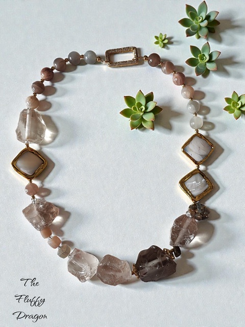 - Material/Conținut piatra lunii, cuart brut, labradorit, perle keshi