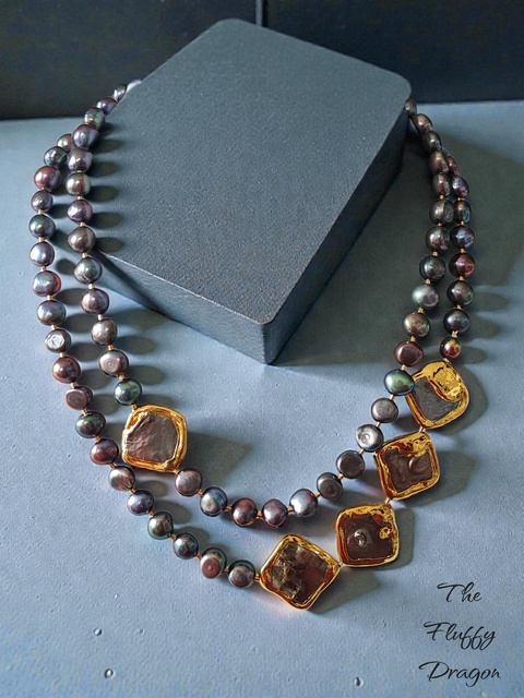 - Material/Conținut perle de cultura, perle negre, perle keshi