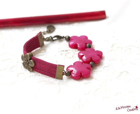 Bratara cu flori de jad roz