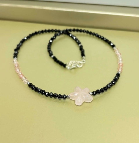 Colier cuart strawberry si turmalina neagra