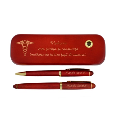 Set pix si stilou in cutie din lemn de trandafir, Piksel, Doctor, cu mesaj, medicina