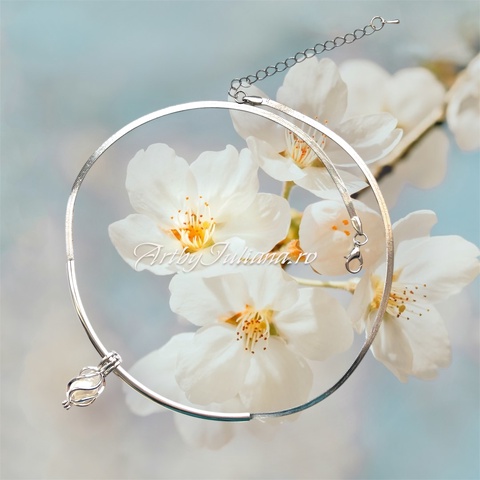 Colier lant oțel inoxidabil cu pandantiv cu perlă de cultură "Floare de mar"
