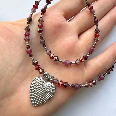 Set colier si bratara turmalina roz, granat si cristale din sticla