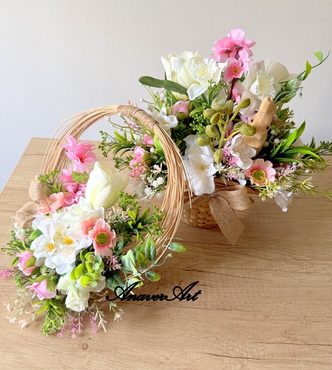 - Material/Conținut coronita midolina, cos bambus, flori artificiale, verdeata artificial