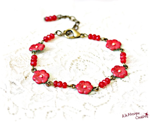 Bratara cu jad si flori corai
