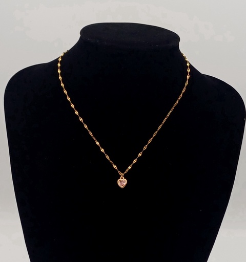 Colier cu pandativ placat cu aur de 18K ,pandantivul cu piatra roz ,zirconiu sintetic.