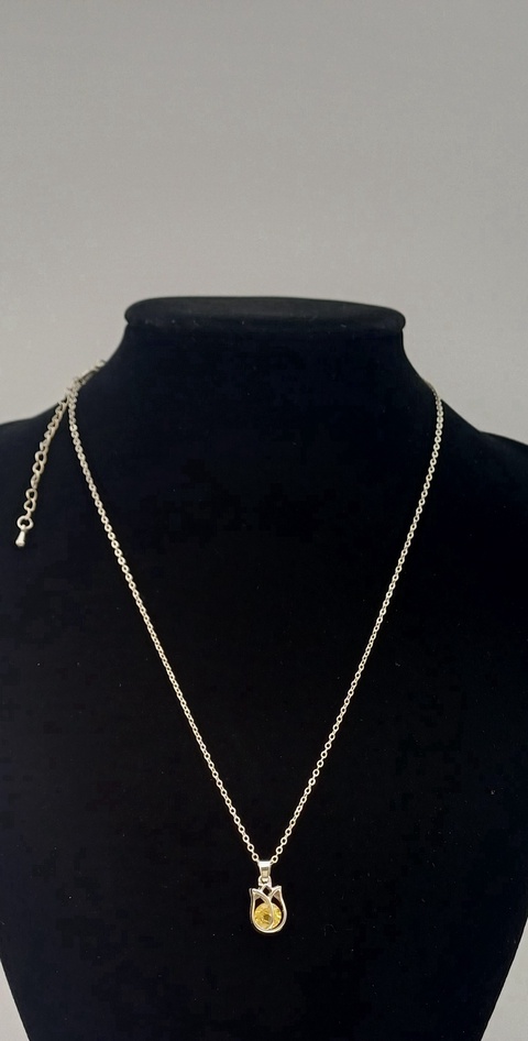 Colier metal inoxidabil ,drăguț cu pandativ din lalea cu piatra transparenta.