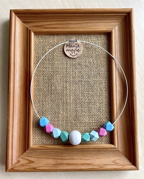 Colier cu bile din lemn, albastru