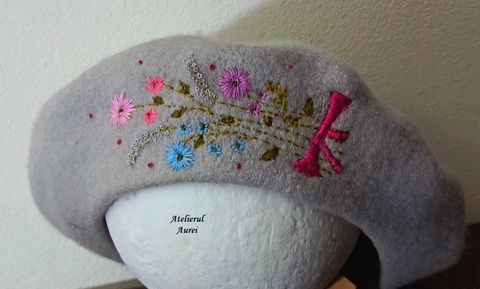 Beretă gri cu broderie manuală