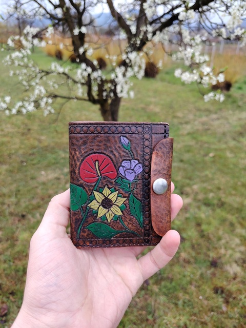 Portofel Unicat din Piele Naturală Sculptată Manual - Motiv Floral - Artizanat autentic