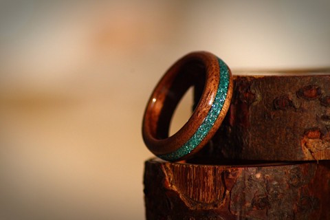 Inel din lemn – Nuc negru cu incrustări de turcoaz
